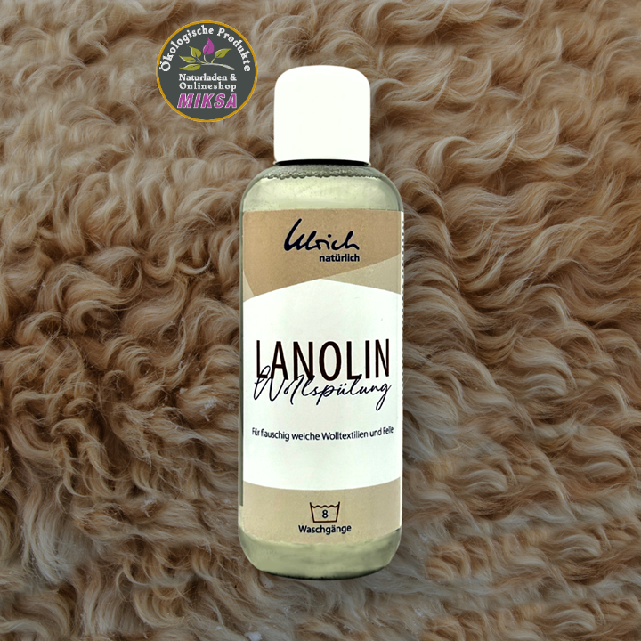Ulrich natürlich Lanolin Wollspülung für flauschig weiche Wolltextilien wie Pullovern, Windeln, Windelhosen etc. und Felle. Sie trägt zur Erhaltung der Struktur der Wollkleidung bei.